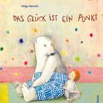 Ich bin umgezogen, und in meinem Gartenhäuschen wohnt ein Eisbär. Er sammelt vieles, bald hat er auch ein Glücksbuch. Je größer der Glücksmoment, desto größer der bunte Punkt im Buch. Drachensteigen ist ein gelber Punkt, hoch oben im Baum sitzen und Kirschen essen ein tiefroter, Schlittschuhlaufen ist türkis. Eines Tages ist er weg, der Eisbär, doch sein Glücksbuch hat er mir dagelassen, zusammen mit den Stiften. Meine neuen Freunde und ich können nun weitersammeln.