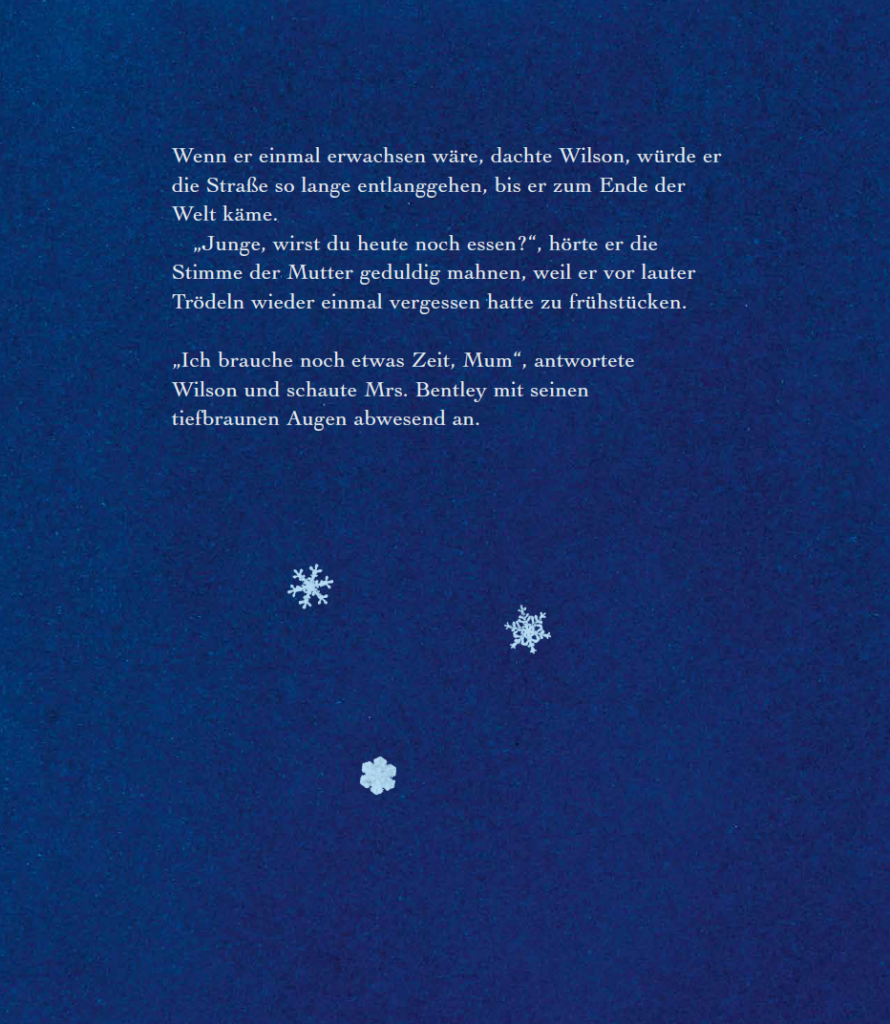 „Ich brauche noch etwas Zeit, Mum“, antwortete Wilson und schaute Mrs. Bentley mit seinen tiefbraunen Augen abwesend an.