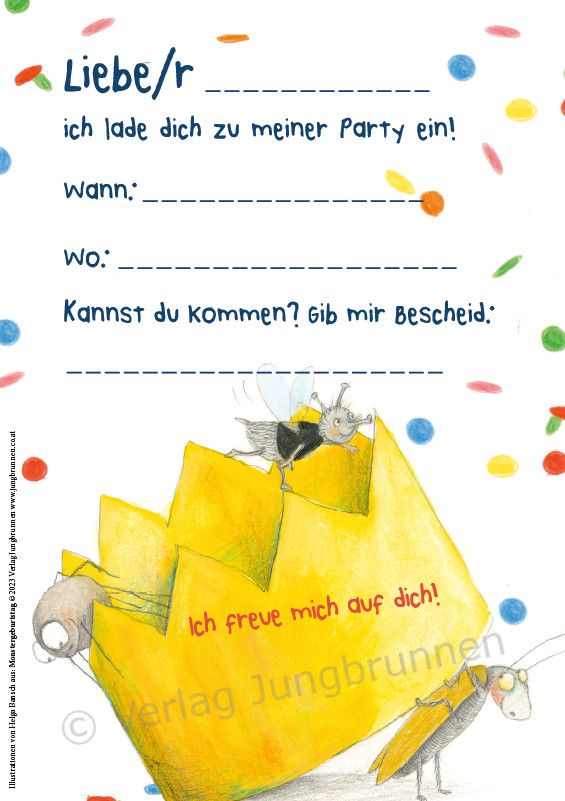 inkl. MwSt.10 Einladungskarten mit dem Motiv „Monstergeburtstag“ aus dem Bilderbuch von Helga Bansch.
